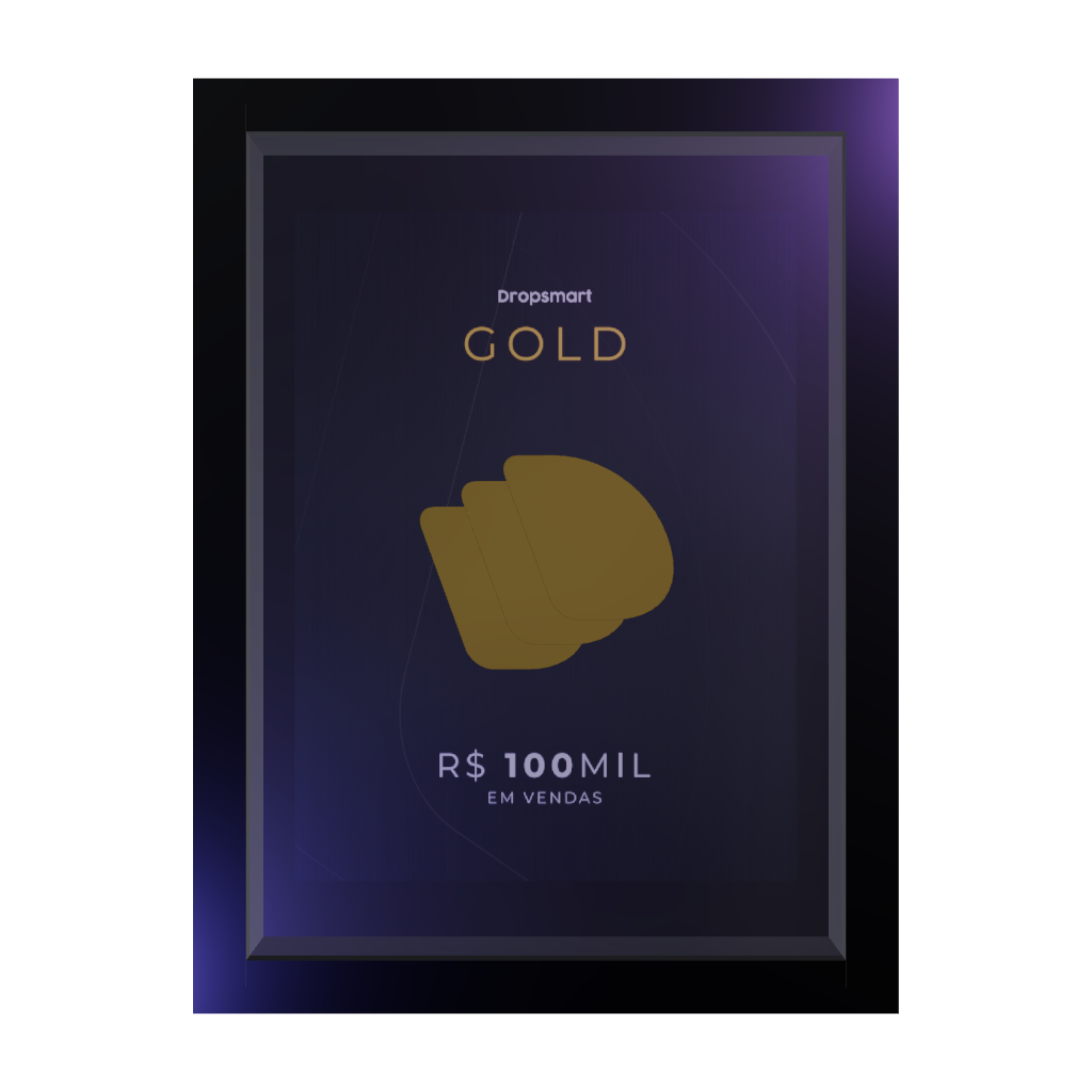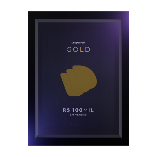 O início de uma trajetória épica! Conquistar R$100 mil em vendas no dropshipping contra entrega é o primeiro grande passo rumo ao topo. A Placa Gold é um símbolo poderoso para impulsionar ainda mais sua motivação e acelerar sua próxima conquista!