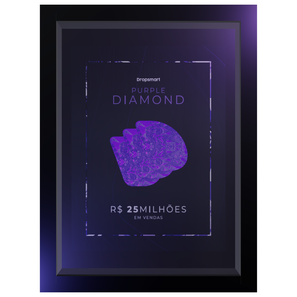 A elite máxima do dropshipping merece uma homenagem à altura dos seus resultados impressionantes. A Placa Purple Diamond é reservada exclusivamente para aqueles que atingem incríveis R$25 milhões em vendas. Exiba com orgulho este troféu lendário e inspire toda a comunidade com sua trajetória extraordinária!